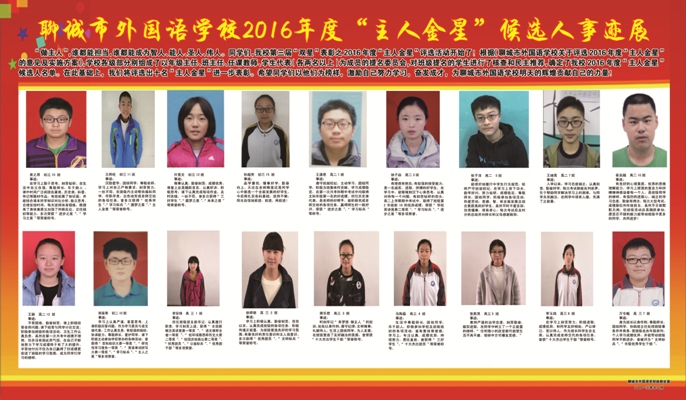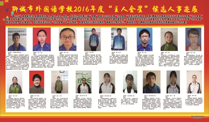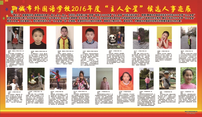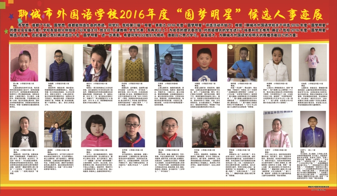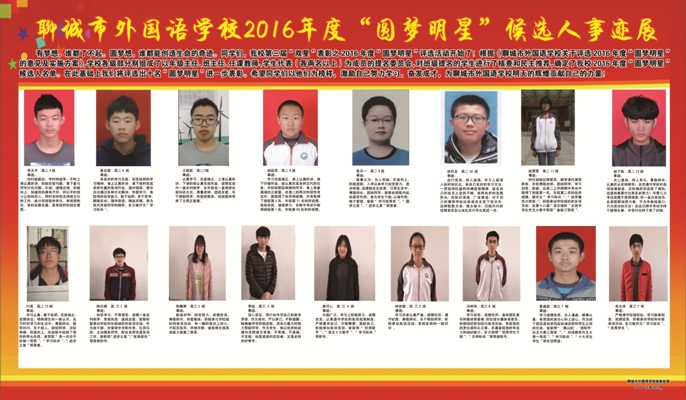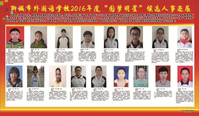 聊城市外国语学校2016年度“圆梦明星”“主人金星”候选人事迹展