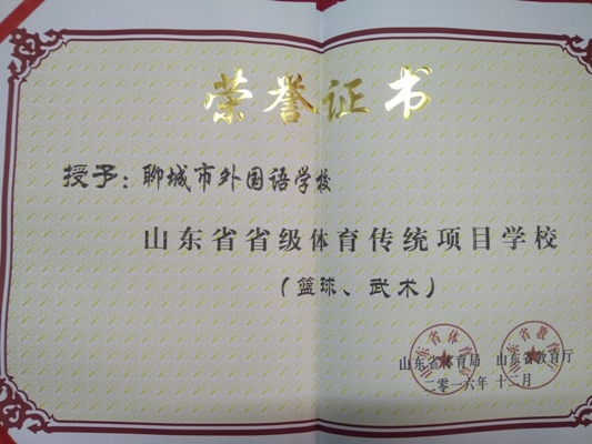近日,经过严格细致的年度评估考核,由山东省体育局、山东省教育厅联合颁发的“省级体育传统项目学校”荣誉称号已花落各家。我校再次凭借过硬的实力,扎实的基础获此殊荣,被评为“篮球、武术省级体育项目传统学校”。 省级体育传统项目学校是教体结合的有效途径和形式,是发现和培养竞技体育后备人才的摇篮。对提高学生的身体素质,培养学生的终身体育意识,提高学校的整体运动技术水平,都具有积极意义。 我校自2009年,创建“聊城市凤凰城青少年体育俱乐部”,成为国家体育总局批准的首批国家级青少年体育俱乐部以来,多次受到省市级表彰,以及在各级大赛中获得佳绩。2010年初,市教育局、市体育局确定我校为中学生男子篮球队和男女武术队的唯一市队校建单位。2011年7月,省体育局、省教育厅批准我校为山东省体育“篮球传统项目”学校。我校篮球队曾多次参加山东省运动会、省篮球锦标赛、省篮球传统项目比赛,并取得优异成绩:2010年至今连续四年五次荣获聊城市中学生篮球赛冠军,2009、2011年分别获聊城市市直机关成人篮球赛季军和亚军,2013年获聊城市第二届运动会篮球赛亚军。近年来,已有近100多名同学通过篮球考试升入各名牌高等院校。2010年武术队成立以来,我校武术队队员庄妍、王恩慧、桑慧欣、李伟、常城等同学在全国、省、市各类比赛中共获国家级冠军 5人次、省级冠军 12人次、市级冠军30人次。特别在第一届聊城市中小学生武术比赛中,我校代表队共获得12项冠军、6项亚军、3项季军的好成绩,并以绝对优势获团体冠军。武术体育特长生高考录取已达300多人,充分体现了我校创建篮球、武术特色,倡导篮球、武术精神,弘扬篮球、武术文化,实现了“健体,启智”的目标。下一步,我校将进一步发挥省级体育传统项目学校在普及学生课外体育活动、开展特色项目训练、提高青少年运动技术水平、培养体育后备人才等方面的骨干示范作用,进一步巩固优势项目,积极发展篮球、武术等特色项目,带动全市中小学体育工作水平再上新台阶。