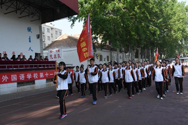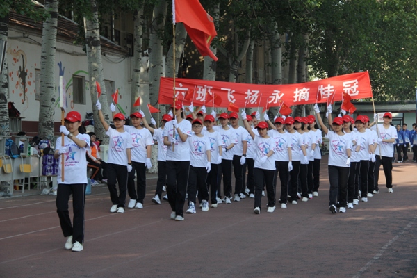 4月28日—29日上午,我校成功举办第11届田径运动会。一天半的时间,校田径场运动场彩旗飘扬,呐喊阵阵,500多名师生运动员参加了本届运动会各个项目的竞赛。聊城一中党委书记、校长李荣军、副校长王怀军、常晓燕、钱洪举、白福信、任强及中层领导赵杰茹、张振红、孙义波、杜广刚、宋伟等主席台前就座。赵杰茹主任主持了开幕式。 4月28日上午7:40,伴着运动员进行曲激昂的旋律,国旗手、校旗手、会徽队、彩旗队及各代表队依次走过主席台展现各自风采。钱洪举校长致开幕词,他指出,我校始终树立健康为本、快乐学习的思想,切实加强体育工作,围绕“抓特长,求特色”举办了形式多样的体育教学和体育活动。2016年11月,省体育局、省教育厅批准我校为山东省体育 “武术传统项目”学校。2010年武术队成立以来,我校武术队在全国、省、市各类比赛中成绩特别突出,在第一届聊城市中小学生武术比赛中,我校代表队共获得12项冠军、并以绝对优势获团体冠军。2015年毕业的连洪振同学考入上海体育大学,安志超同学被华侨大学录取。2016年毕业的常城、刘维路同学被北京体育大学录取,桑慧欣同学被天津体育学院录取。这些成绩的取得实现了我校创建武术特色,倡导武术精神,弘扬武术文化,“健体,启智”的目标。这是全体师生共同努力的结果,这是学校全面贯彻党的教育方针、大力推进素质教育的成果。他希望全体同学以本次运动会为契机,以拼搏的精神、顽强的斗志投入到今后的学习生活中,继续书写自己的美好未来。他鼓励全体师生继续发扬运动会中表现出的积极向上、勇于超越的精神,再接再厉,积极进取,努力开创学校建设的新局面。 开幕词结束后,李荣军校长宣布:“我校第十一届运动会现在开始!”运动场各个比赛项目相继进行,比赛高潮迭起,一个个项目冠军接连产生。观看比赛的同学也积极响应,赛场周围的“加油”声此起彼伏,不绝于耳。他们的热情、激动的情绪,感染了每一个人,使本届校运会创造了一个又一个新记录。 在比赛过程中,运动员们顽强拼搏,赛出了成绩,比出了风格。啦啦队助威的呐喊声,运动员取得胜利的欢呼声,不断地在校园上空响起。比赛期间,学校的纪检部同学们也在认真的值勤,他们穿梭在各个比赛场地,维护着赛场的秩序,使得校运会成为了同学们尽情展示才华、增进友谊、磨练意志的大舞台。 一天半的比赛时间里,全体运动员、裁判员和工作人员顽强拼搏,共同努力,竞技成绩和精神文明双获丰收。?运动会结束了,但外国语学生对体育对学习的热情不会结束,他们将铭记心中“有梦想,做主人”的校训,斗志昂扬地谱写更辉煌的未来! (记者团记者商艺璇、陶涵美凝、布华伟、 郝梦茹、冯茂森联合供稿,校团委编修定稿) 摄影作品供稿:初一一班赵先圣、初一五班武书宇 初二六班俞若涵 高一二班宋培宇、高一七班刘寒冰、高一三班宋福顺、高一十三班李昕睿、高一一班陈仁浩、高一七班李沛雨、高二二班吕浩楠、高二六班刘端、高二三班路明臻 、高二十二班 黄贤蕾
