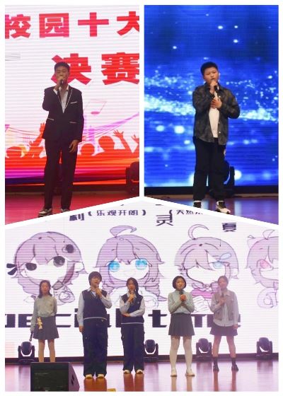 一年一度“校园十大歌手”选拔赛决赛近日在学校大礼堂落下帷幕。初高中从初赛中脱颖而出的选手齐聚决赛舞台,用歌声点燃青春激情,为现场师生带来了一场难忘的视听盛宴。 初一6班 董嘉妮、初二1班郭雨森,高二3班韩诗琪、高二5班王浩宇分别担任了本次初高中赛事的主持人。