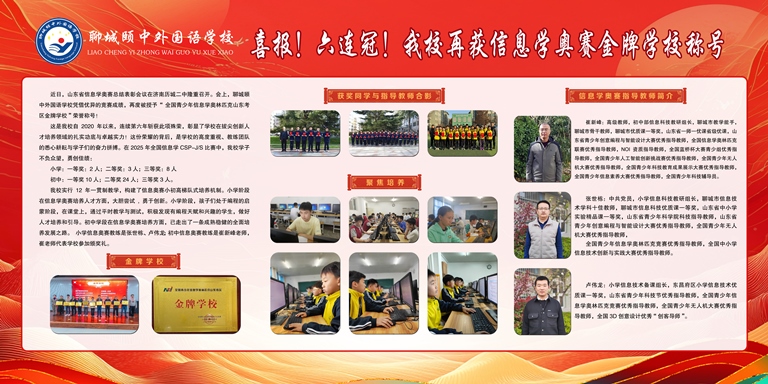 近日,山东省信息学奥赛总结表彰会议在济南历城二中隆重召开。会上,聊城颐中外国语学校凭借优异的竞赛成绩,再度被授予“全国青少年信息学奥林匹克山东考区金牌学校”荣誉称号!