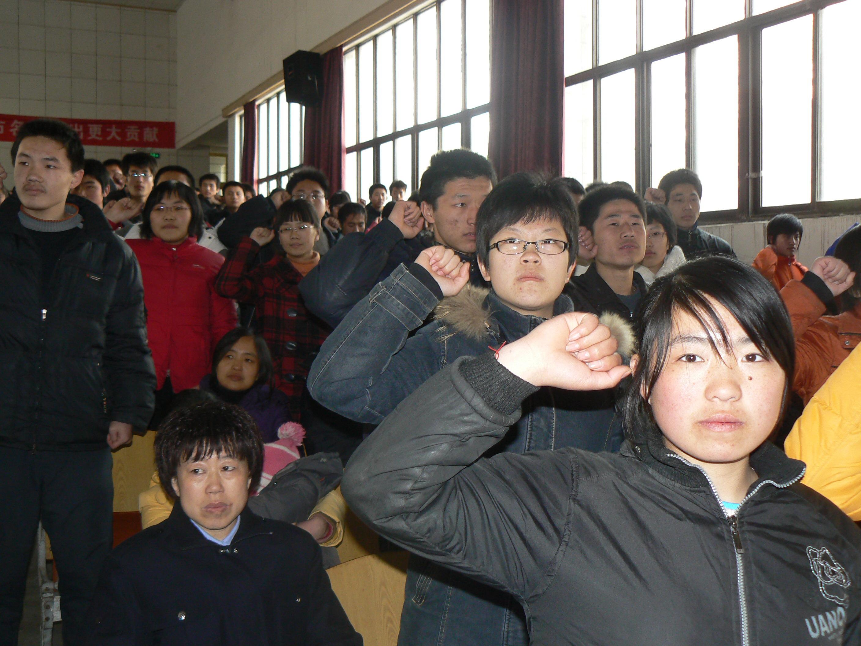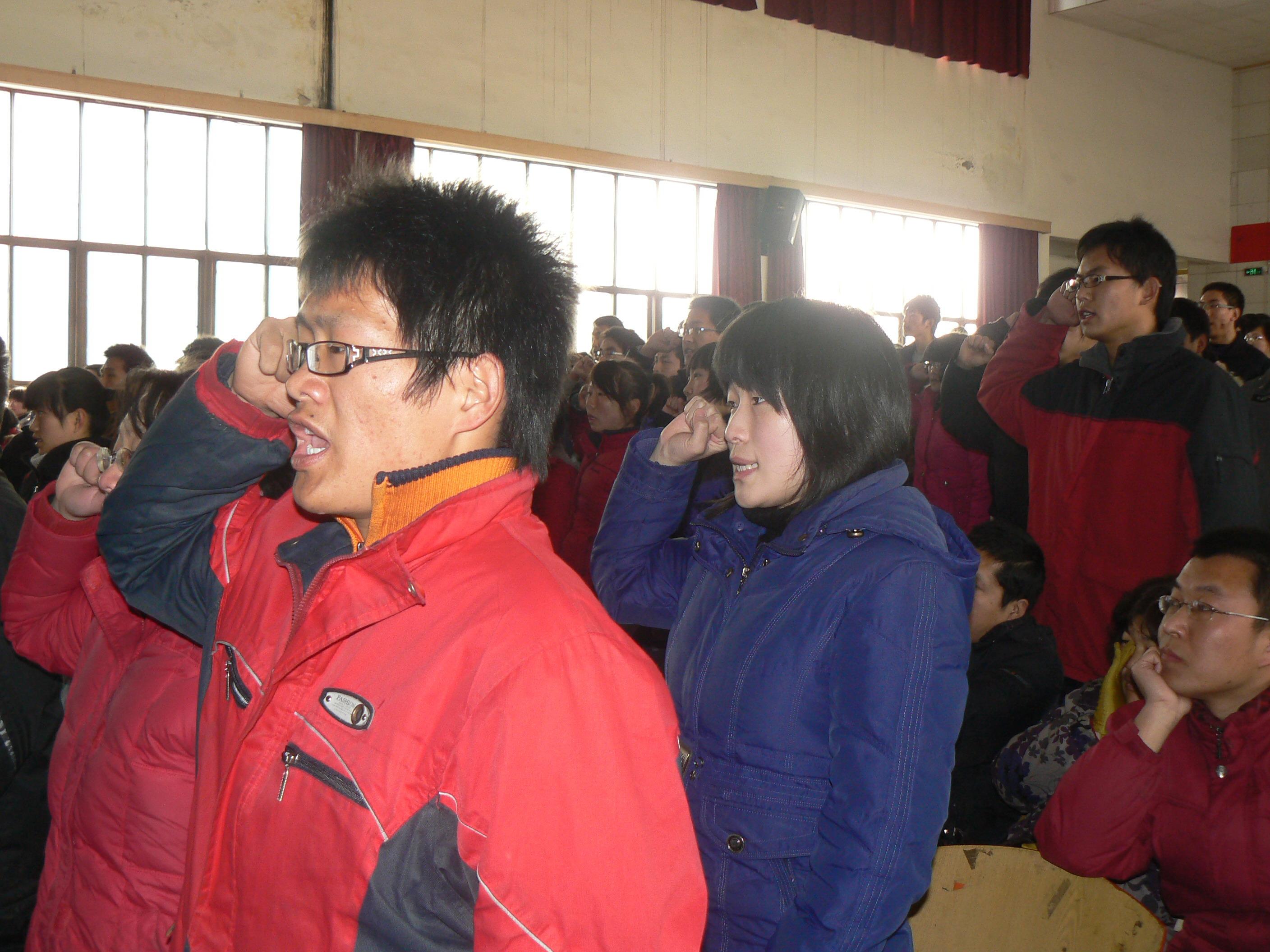 2010年3月7日下午1:30高三千余名学生和学生家长在礼堂召开了决战高考冲刺誓师暨家长会。年级主任王守涛主持了会议。 会上,徐继胜校长首先为大家分析了当前的高考形式,结合我校高考录取人数连年提升的优良成绩,为大家明确了当前高考努力的方向。同时,他向家长提出了三点建议:希望家长立足实际看待学生目前的成绩,积极配合老师监管好自己的孩子;希望家长关心孩子的安全问题,关注孩子的身心健康,做好后勤保障;希望家长多与孩子交流沟通,注重教育方式方法。他要求全体教师为了每个学生,为了每个家长,全力以赴,尽职尽责,与学生共同拼搏90天,帮助学生实现自己的梦想。最后,他勉励学生志存高远,以坚定的信念,勤奋的态度和科学的方法和永不言败的壮志豪情冲刺高考,创造2010年高考新辉煌。校长热情洋溢的讲话,大大激发了全体高三学生的斗志,催人奋进,博得师生们的阵阵掌声。 王主任从三大方面向家长介绍了高三的备考工作:以教师为主导,通过“三个加强”全面落实和完成高考攻坚阶段的教学任务;以学生为主体,通过“三个树立”全面迎接和驾驭备考阶段的学习挑战;以质量为根本,通过“三抓”全面提高学生的成绩。并围绕高考钱学生的心理表现,从两方面提醒家长“尽量不要给孩子施加压力”、“降低过高的期望,让考生心里有底。”教师代表王晓霞表示:有学生的地方,有学生的时刻,就一定会有老师的身影,我们一定会以校为家,忠于职守,我们会像爱自己孩子一样爱自己的学生,我们将精诚团结,通力合作,刻苦钻研,潜心备课,我们将笑对孩子们的提问与质疑,随时关注高考动向,我们与会同学们并肩作战,竭尽全力!随后学生代表许鸿坤带领全体同学宣誓:我们将以最饱满的热情,最昂扬的斗志,最刻苦的精神,最坚韧的毅力调动所有的潜能,会聚全部的力量,用拼搏换取进步,凭奋斗锻造信心,奋斗九十天,用汗水孕育不凡;奋斗九十天,用智慧丰富内涵;奋斗九十天,靠实力笑迎挑战! “奋战九十天,决胜高考”!铿锵有力、激情澎湃的声声誓词,久久回荡在青春的校园。高三决战高考冲刺誓师大会坚定了学子高考必胜的信心和决心。