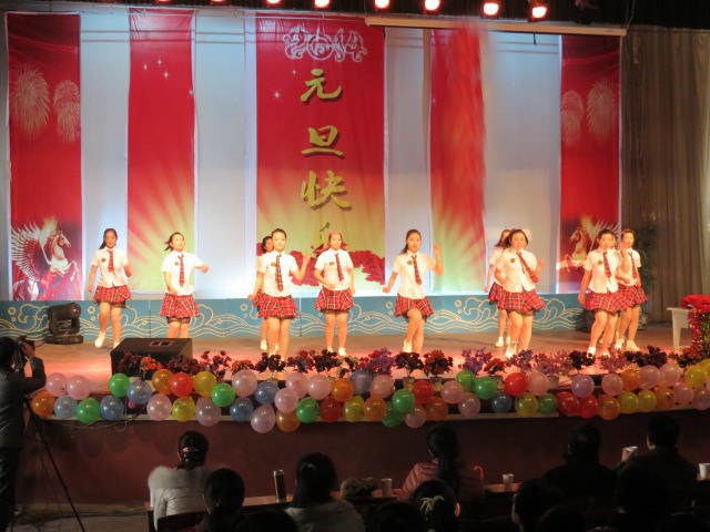 多彩校园展魅力 艺术花开绽舞台 ——记我校2014年元旦联欢会 金蛇欢舞辞旧岁,策马奔腾迎新春。2013年12月31日下午,学校大礼堂成了欢乐的海洋,我校在这里隆重举行2014年元旦联欢会。高一高二年级全体师生在此共同庆祝2013年取得的辉煌成绩并展望2014年的到来。学校校长崔秀山、党委书记李荣军、副校长王怀军、常晓燕、钱洪举和政教处主任赵杰茹、团委书记张丽娜、年级主任孙义波、张振红、保卫科科长蒋光健等领导以及班主任老师一起观看了演出。 刺骨的寒冷抵挡不住同学们火热的激情,随着欢快的开场舞《向快乐出发》的定格,三位主持人神采奕奕地登上舞台,联欢会在娴熟而震撼人心的架子鼓演奏下拉开帷幕。接下来,初中部、高中部的师生各展才艺,演出了包括舞蹈、相声、武术表演、小品等20个节目。其中,初中部教师自创了《新年祝酒歌》,他们用各地方言讲述了老师们的付出与收获,表达了师敬业,师爱生的精神追求,并为全校师生献上节日祝福。团委书记张丽娜声泪俱下地与贾冉冉、李恩琛同学一起深情朗诵《唱给母亲的歌》,浓浓的母爱荡涤着每个同学的心灵,在场的同学无不为之动容。一曲《光辉岁月》又把我们的思绪带回到曼德拉为人民的自由、平等、宽容、和谐的不懈奋斗中,使全体同学经受了一次崇高的精神洗礼。而民族舞串烧《花韵》则给我们勾勒了一副又一副美轮美奂的画面:一个个美丽轻盈的身影柔美地舞动着,像水波一样灵动的身姿仿佛存在着无数个精灵,由缓到急,由急到缓,至情至性的跳动着,让在场的观众深深陶醉。校武术队带来的《马踏飞花》将联欢会氛围推向高潮,赢得观众一次又一次的热烈掌声。相声《救,不救》在嬉笑逗趣中让学生慢慢体悟要帮助那些遇到困难的老人,向他们献出爱心,伸出援助的双手,传承雷锋精神。“我们外国语就是教育界的心脏,我们的保安就是外国语的保护神”,高二年级学生改演的小品《吉祥三保》再次点燃现场观众的热情,笑声、掌声、欢呼声响彻全场,礼堂顿时被淹没在快乐的海洋中。伴着优美的旋律,联欢会在赵杰茹主任、张丽娜书记、范静静老师深情演唱的《今宵情》中落下帷幕……这些节目展示了我校师生的才华与心血,展现了我校师生朝气蓬勃、锐意进取的精神面貌以及我校艺术教学成果。 此次联欢会,不仅为同学们提供了一个展示自我的平台,更体现出我校师生团结进取的和谐氛围。流金岁月,铭刻发展的历程;似水年华,传承奋进的誓言。让我们带着希望,带着憧憬,期待聊城市外国语学校的明天更加美好!(摄影/ 张有余 文/任爱华)