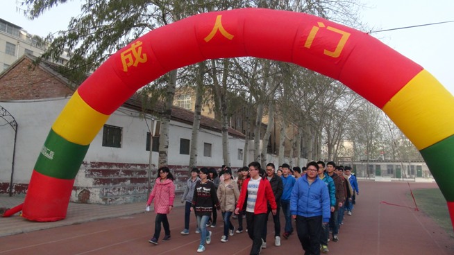 3月18日上午,我校为高三同学隆重举行了十八岁成人礼。学校党委书记李荣军、副校长钱洪举、政教处主任赵杰茹、团委书记张丽娜、年级主任孙永前、家长代表刘耀文等共同见证了高三同学十八岁的青春足迹。 成人礼在雄壮的国歌声中拉开帷幕。望着冉冉升起的国旗,在同学们专注的眼神中我们感受到了他们赤诚的爱国之情和实现富国强民的信心和决心。 伴着优美欢快的旋律,所有高三同学满怀憧憬地走过象征成年的“成人门”,迈上“祝福大道”, 接受李书记、钱校长等领导带给他们的“纪念卡”和真诚的祝福。 十八年,一瞬间,就在今天,530名高三同学从幼稚走向了成熟。面向鲜红的国旗,他们庄严宣誓:捍卫神圣宪法,维护法律尊严 。 履行公民义务,承担社会道义。俭以养德,朴以修身,信以立业,诚以待人,忠以报国,孝以侍亲,壮我体魄,励我精神,敏言慎行,自强不息。以我壮志激情,肩负成年责任,以我火红青春,报效祖国人民! 在这个神圣的时刻,李书记代表全体师长对已经成人的高三同学表示真诚祝福,祝他们一生顺利,祝他们取得一个又一个成功,实现人生价值和美好梦想。他希望,全体学生做一个中华民族的合格的建设者和接班人,做一个科技强国的实现者,做一个军事强国的实现者。他要求同学们把目标指向高考,以无往不胜的勇气和决心战胜高考,赢得胜利,实现人生当中的第一个胜利,圆自己的大学梦,取得自己的第一个人生的成功,为自己的人生开好局,定好位,创造良好的条件。 最后,钱校长要求同学们站在人生的新起点,永远珍藏这美好的时刻,牢记领导的期望、师长的嘱托、父母的叮咛,常怀感恩之心,常为感恩之行,以实际行动和成绩回报师长、回报社会。并语重心长地叮咛学生学会自律、学会承受、学会学习,祝福同学们在接下来的日子里生活精彩,高考成功,人生出彩! 此次活动使同学们深受触动,大家纷纷表示,一定牢记父母嘱托,树立远大理想,磨砺坚强意志,全面提升能力,始终把报效祖国、奉献社会、服务人民作为毕生追求,自觉把个人价值融入到社会的发展进步之中。 附:党委书记李荣军在我校2014年成人礼宣誓仪式上的讲话 同学们,美好的季节迎来了神圣的时刻,在这难忘的日子——3月18日,在离高考还有80天的时刻迎来了你们的十八岁成人礼。我代表学校领导和教职工向你们祝福,祝你们一生顺利,祝你们取得一个又一个成功,实现人生价值和美好梦想。在这里,我给大家提一点希望: 做一个中华民族的合格的建设者和接班人。同学们,从1949年建国到现在我们新中国走过了65年的历程,65年,我们中国从一贫如洗发展到了去年国内生产总值,即GTP,列位世界列第二,且远超位列世界第三的日本,达到了日本的两倍。我们中国富起来了,但是我们中国还不强,还不是强国,为什么不强?因为我们的文化不强、因为我们的科技不强、因为我们的军事不强。要让我们中国强起来,首先让我们的文化强起来,科技强起来,军事强起来。希望我们每一位同学,在18岁成为中华人民共和国完全法律意义上的公民的时候一定要下定决心为我们国家的富强、文明做出贡献,接过并肩负起先辈们交给我们的民族复兴的重担,成为合格的建设者和接班人。首先我们要做中国文化的传承者和中国强势文化的创造者。我们知道,我们中国一年出产的文具创造出来的价值不如美国一个大片带给他们的价值。本来,我们中国有自己的文化,而且文化底蕴深厚,但是我们中国的文化现在不是强势文化。打造中国的强势文化, 让中国文化走向世界,寄托在每位中国人身上,也寄托在现在在场的每位18岁同学身上。要使中国的文化强大起来,首先我们要认真学习中国的传统文化,而且要为中国的传统文化成为世界文化做出贡献。做文化的传承者和创造者还包括,让我们每位中国人都以优雅的君子形象走向世界,在世界上树立我们中国人的良好形象。 做现代科技的发展者,现代科技造福国家社会人民的操控者。我们科技不强,原因在于我们的科技人才匮乏,科技人才水平不高。怎样才能使我们科技强大,我们只有勤奋学习,勇于攀登科学高峰,立志为科技强国奉献青春和力量。 做军事强国的贡献者。我们知道一个国家军事强大了,才能挺直腰板,在世界上才有地位才有话语权,国家核心利益,政治经济利益,公民权利才能得到保障。我们每位已经到了成年人的同学,就要敢于担当,勇于奉献,敢于为实现军事强国做出我们的奉献。尽管多数学生一生都不可能当兵,但我们仍然可为国防贡献力量。 今天,我们高三学生离高考还有80天。高考是我们成人以后迎来的第一场战役。当今,我们就要把我们的目标指向高考,请同学们以无往不胜的勇气和决心战胜高考,赢得胜利,实现我们人生当中的第一个胜利,圆自己的大学梦,取得自己的第一个人生的成功,为自己的人生开好局,定好位,创造良好的条件。 最后祝大家高考顺利,一切顺利,高考成功,一生成功!