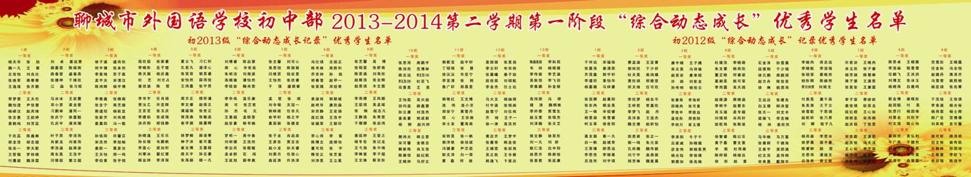 聊城市外国语学校初中部2013-2014学年第二学期第一阶段“综合动态成长记录”优秀学生名单