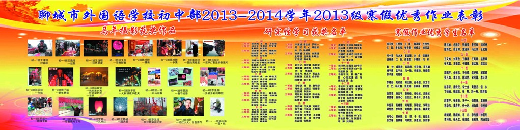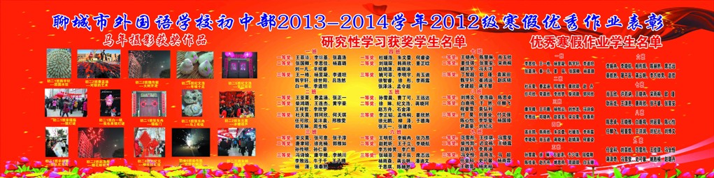 聊城市外国语学校初中部2013-2014学年2012级寒假优秀作业表彰