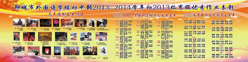 聊城市外国语学校初中部2013-2014学年2012级寒假优秀作业表彰