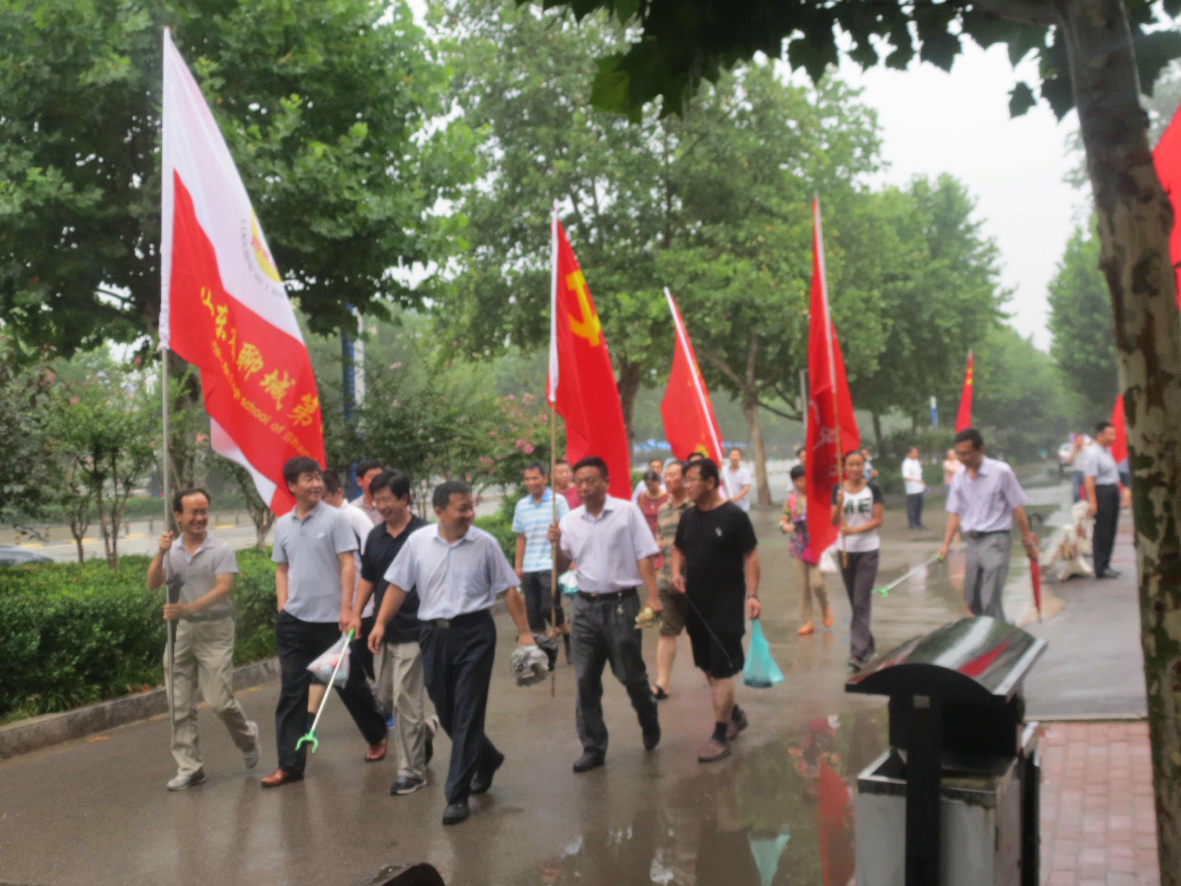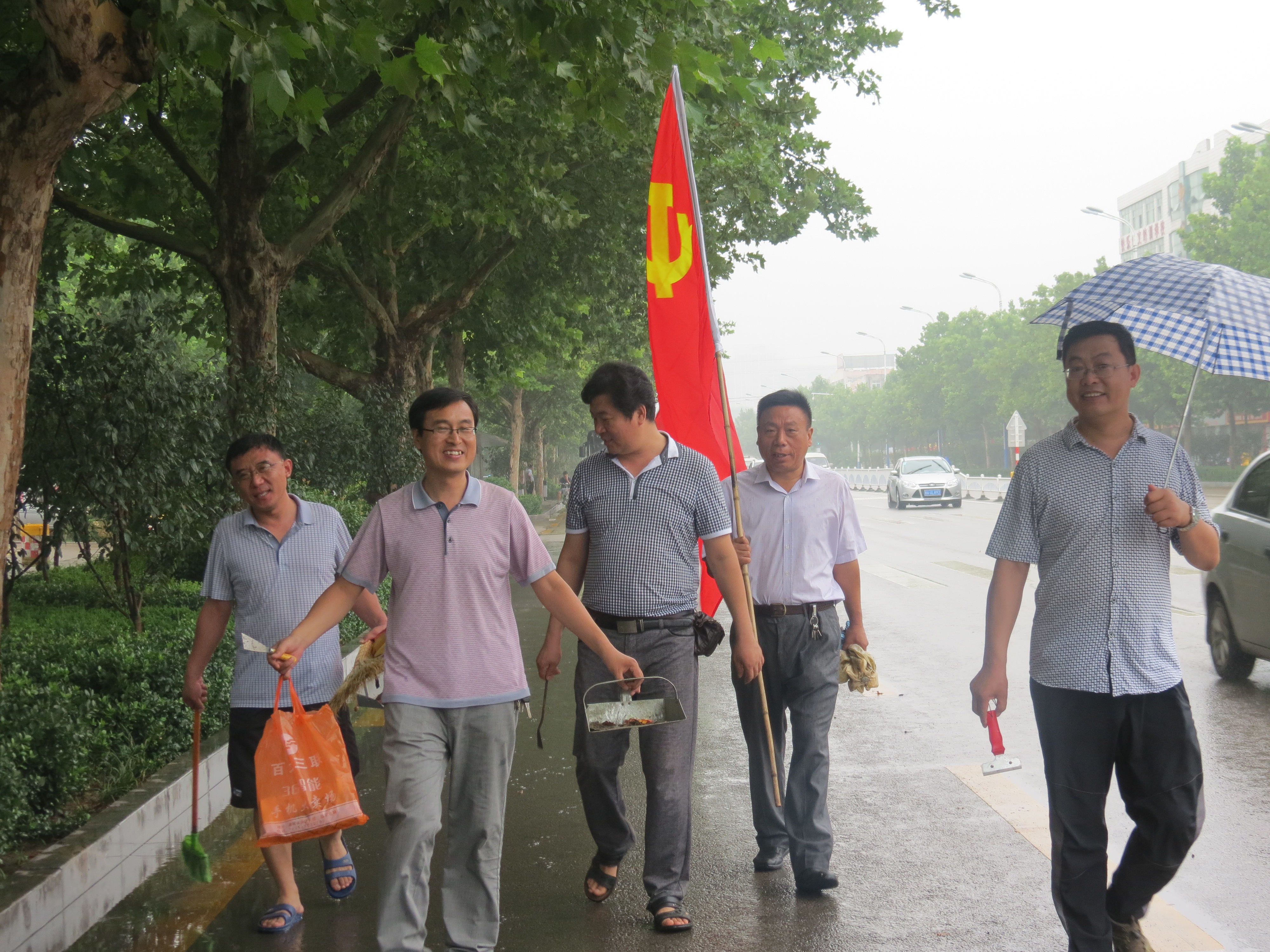 雨中迎创卫 行动爱家乡 ——聊城市外国语学校党支部参加全市创卫集中活动