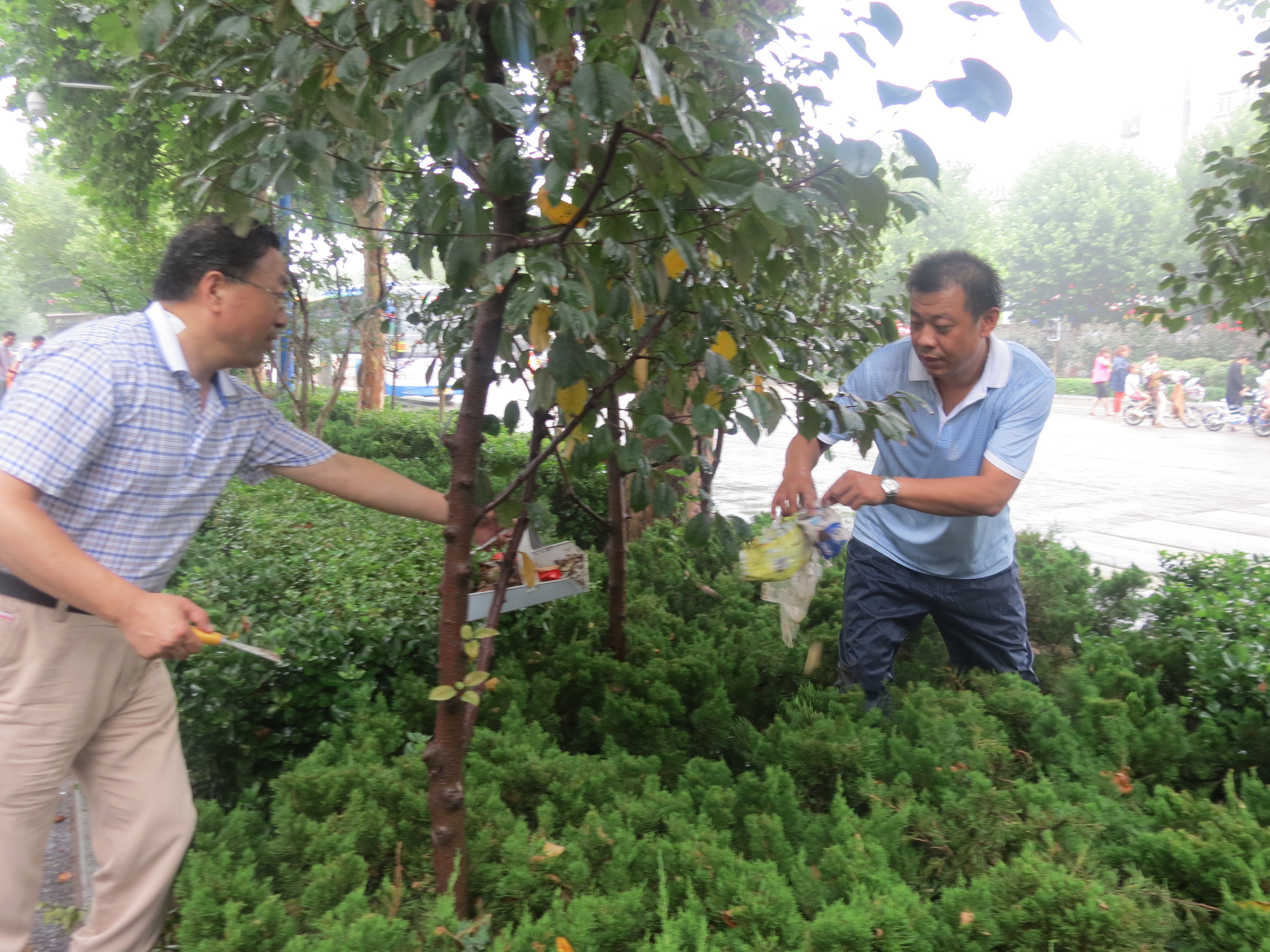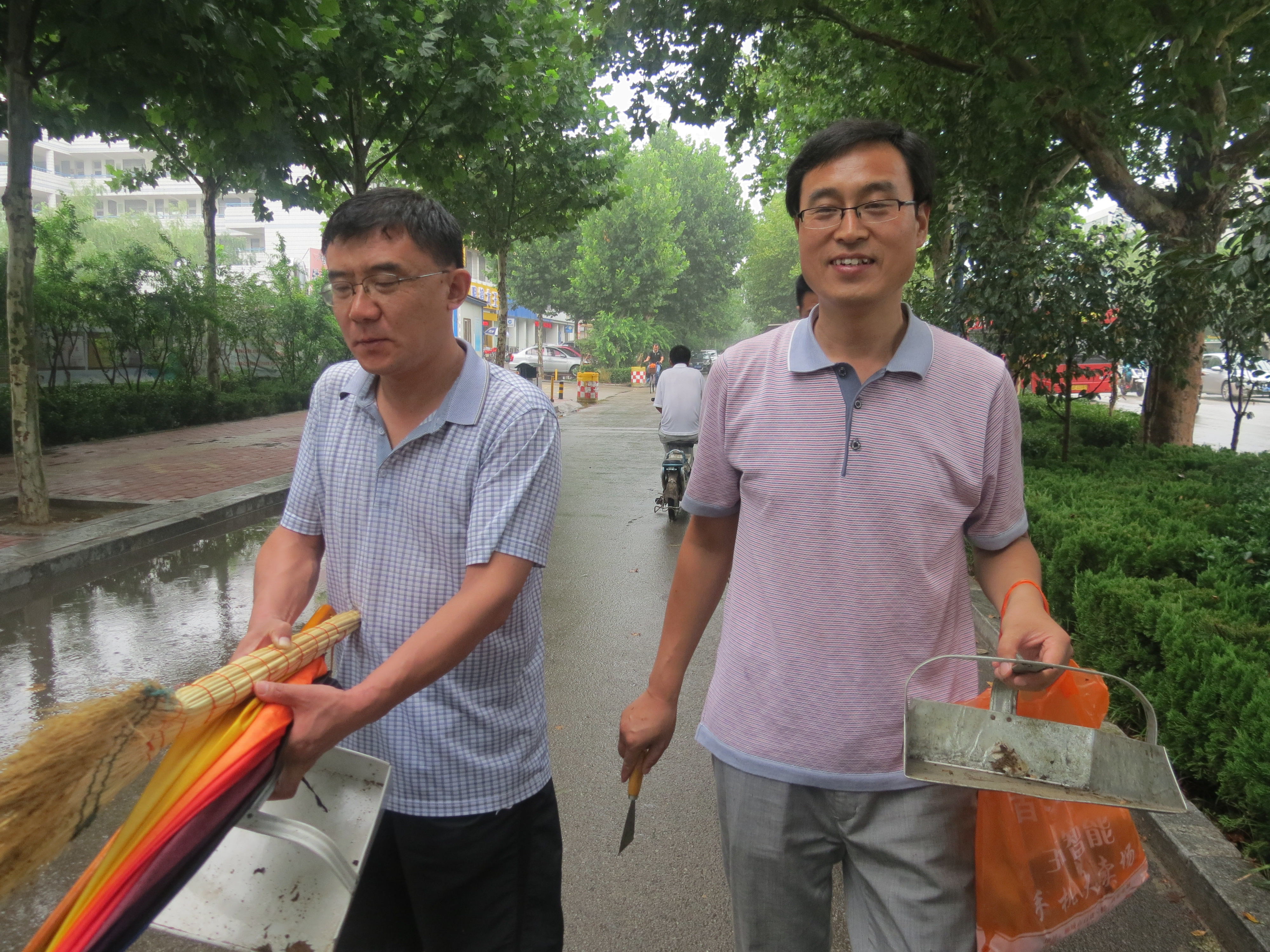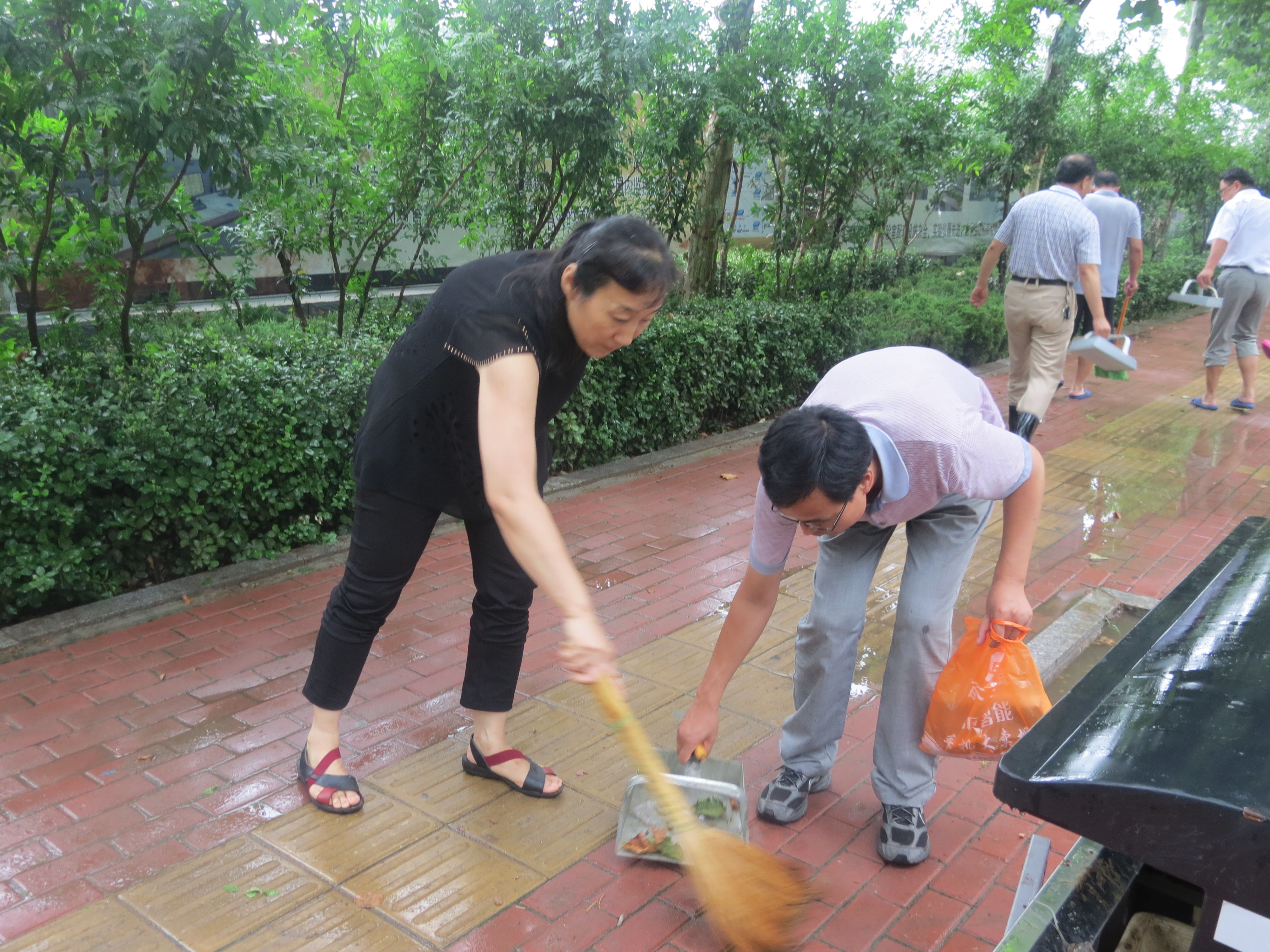 为迎接全国卫生城市复审,我校党委积极响应市委市政府关于“积极开展全城大清扫,创建‘美丽水城、宜居家园’”的号召,于7月18日下午3点,召集我校全体党员在校域路段内沿柳园路东西两线开展卫生清扫及综合治理工作。 在一中于文林书记、外国语王怀军校长、钱洪举校长的亲自带领下,卫生工作热火朝天地开展起来。我外国语一部共有5个党支部约30名党员参与本次卫生清扫活动。小学党支部、初中党支部和高中党支部的全体党员同志负责清扫八中至联通公司路段东线沿街道路,行政党支部和高三党支部全体党员负责八中至联通公司路段西线沿街道路。东西两线同步进行,一时之间马路两侧旗帜飘扬,形成了一道亮丽的风景线。西线的卫生工作主要集中在花坛里的碎纸、烂树叶、烂草根、停车护墩里杂乱的丢弃物,大家或弯腰捡拾树叶,或用铁铲清理平土,或运送废弃物,分工明确又互相支援,在沿线道路展开了细致地搜索与清扫。东线相对来说清理起来会更加困难,沿街的小饭店和小吃铺在路面上残留了一些剩菜剩饭,我外国语教师发扬不怕苦不怕累的精神进行逐一清理,并在公交站台的每一块玻璃上仔细搜寻小广告的痕迹。看着劳动结束后闪亮的橱窗,同志们心里都有一种说不出的激动。在清扫过程中我小学部教师还意外拾得一个女士挎包内有身份证钱包等物品,根据身份证信息显示为张立娜,东阿县刘集镇小赵村人。也希望借此平台能找到失主。 本次活动历时一个小时圆满结束。虽是冒雨清扫,但我外国语学校的全体党员发扬无私忘我的奉献精神仍以饱满的热情和高度负责的精神投入到全市的大局工作中。我们要以实际行动让我们身边的环境更整洁、管理更有序、城市更美丽。爱我家乡、建设家乡,从我做起,从一点一滴做起,让我们共同努力! 聊城市外国语团委宣 2015-7-18 下附:《在全市国家卫生城市复审推进会上王忠林市长的讲话》 (2015年7月7日)