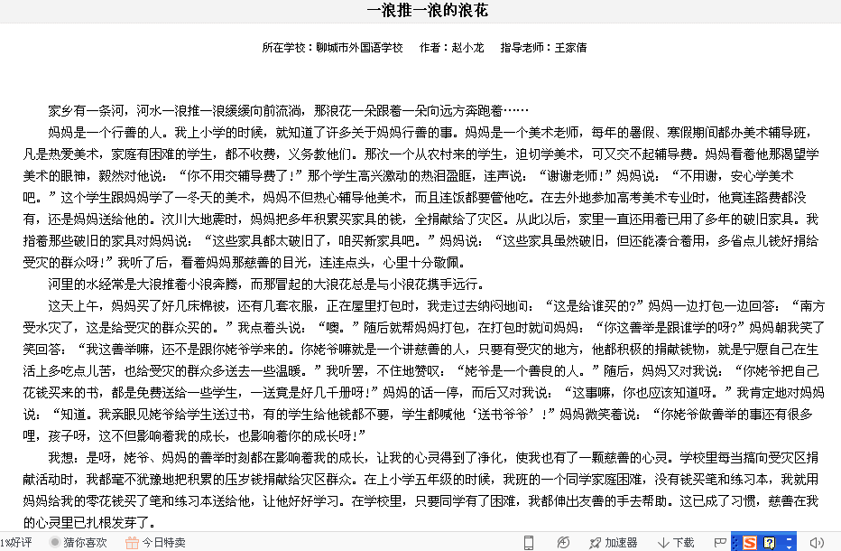 我校6名学生在聊城市网络作文大赛上获奖