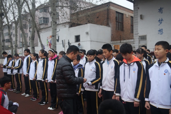 我校隆重举行共青团入团仪式 2015年12月7日早上,我校在操场上举行了庄严的共青团入团仪式。全校师生共同见证了一百余名新团员的诞生,并致以真诚的目光和由衷的祝贺。整个操场上洋溢着喜悦和欢乐的气氛,寒冷的清晨就这样活跃起来了。 学校副校长钱洪举发表致辞,首先对共青团新团员表示热烈祝贺,随后语重心长地对新团员提出了要求,指明了方向。他说,共青团是在抗日战争中英勇显现自己力量的青年学生组织的团体。团结、合作、一切为党和国家的利益为重,坚决维护国家形象是共青团的主要纲领。为了纪念他们,每年都会选出表现积极,行为端正,待人处事正确的优秀青年学生入团,壮大共青团队伍,是一件有意义有目标的集体活动。 随后四名持有共青团团旗的护旗手庄严帅气的走到了五星红旗之下肃立,接着一百余名奋发向上、斗志昂扬的新团员排列着整齐的队伍来到了国旗前方站好,气氛变得严肃、沉稳,但不能压抑住共青团澎湃的内心。接着,钱洪举校长、任强校长及各年级主任为他们颁发了团员证,小小的证件承载了对他们的期盼和希望!所有新团员手持团员证,在国旗与团旗前庄严宣誓,铿锵有力的宣言表达了他们对共青团的热爱! 仪式结束后,新团员纷纷表示,一定践行我校“有梦想,做主人”的校训,胸怀梦想,努力学习,不辜负老师和家长的期望,珍惜现在美好的青春时光,砥砺品德,陶冶情操,全面发展,争做“主人”。努力成为建设伟大祖国,建设美丽家乡的有用之才,栋梁之才! ----高一(4)班刘志聪 报道