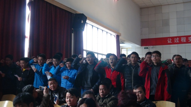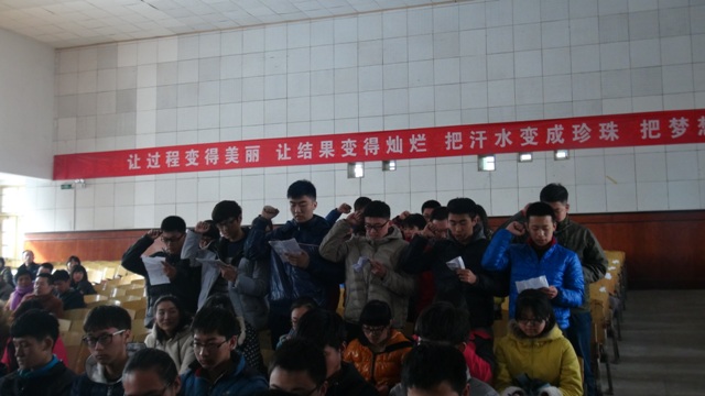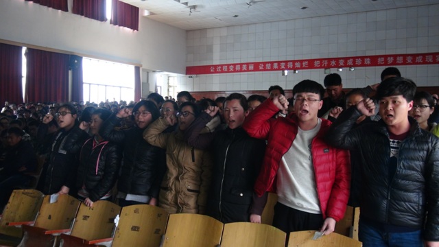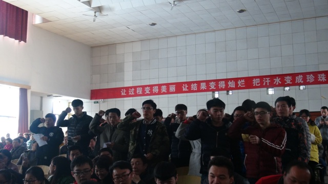 之后钱洪举校长传达了学校关于加强高三教育教学的指导意见,并宣读了我校关于加强高三毕业班教育教学工作的文件。同时给学生提出了三点要求:(1)坚定信念,志在高考。