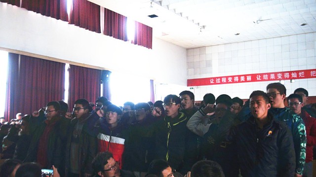 2月27日,我校2013级高三在学校大礼堂隆重举行2016年决战高考百日冲刺誓师大会。出席大会的学校领导有王怀军校长、钱洪举校长、王守涛主任、柳阳主任、杨旭东主任、赵杰茹主任、冯敏主任、张丽娜书记和高三年级孙义波主任。