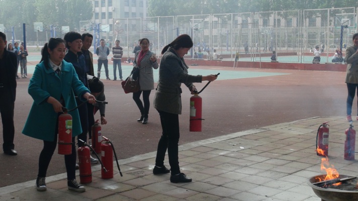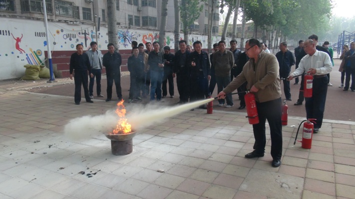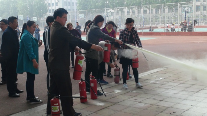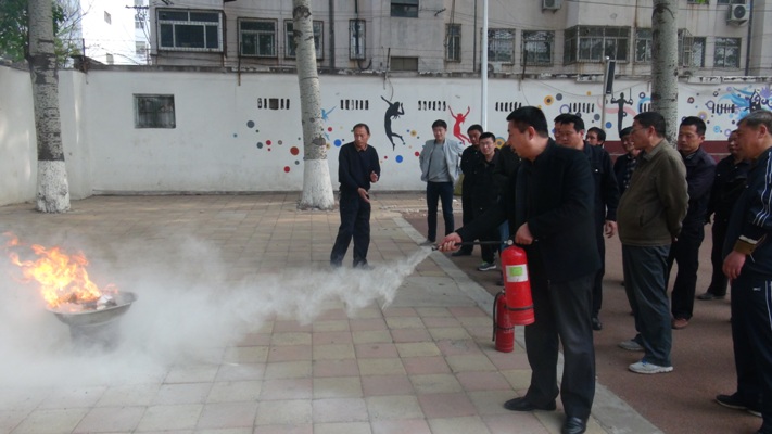 为加强消防安全宣传教育,使广大教职员工了解和掌握消防基本常识和技能,进一步提高我校教职工的安全防火意识,4月12日下午,我校保卫科队长魏西宾在学校操场前举行了安全防火知识讲座,并组织教职工进行了灭火演练活动。我校领导王怀军校长、钱洪举校长、任强校长及学校各科室相关教师和部分生活老师参加了此次活动。 魏老师认真讲解了火灾基础常识、火灾预防、灭火器材的种类和使用、火场逃生等消防基本常识,并讲解了灭火器的使用方法,指导在场的老师进行现场演练。 通过此次讲座,大家受到了一次系统的消防安全教育,并深刻认识到消防安全的重要性与火灾的危害性,加强了教职工对于消防安全的重视程度,提高了消防安全意识。