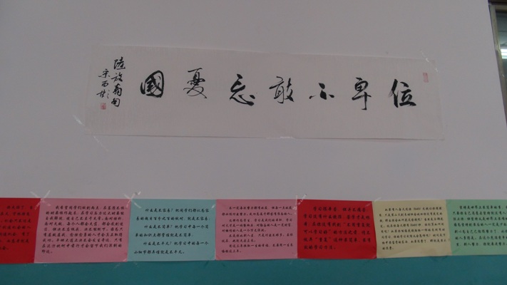 4月初,我校高中部举办“清明——传统文化”班级文化展。高一11班,高一10班,高一9班;高二1班,高二7班,高二2班分获两个年级前三名。通过此次班级文化制作,既美化了班级环境,增强了文化氛围又促使同学们深入了解了传统文化。