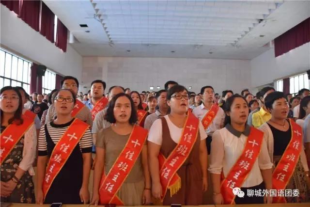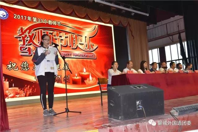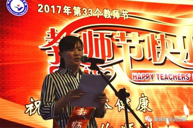 荣获“十佳教师”荣誉称号的谭欣欣老师代表全体教师做了热情洋溢的发言,表达了身为教师的自豪感和责任感,表达了为早日把聊城市外国语学校建设成为市名校、省名校乃至全国名校而挥洒无悔青春的豪迈激情!