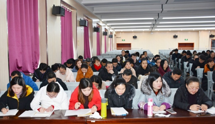 继2019年2月16日(正月十二)我校召开全体中层以上领导干部会议全面部署新学期工作之后,各学部、各学段结合各自实际工作分别召开会议布置具体工作。2月17日(正月十三)上午8:30,我校中学部新学期第一次全体教职工大会在教学楼六楼报告厅召开。学校党支部副书记、副校长任强和中学部全体中层领导及198名任课教师参加了此次会议。教务处杨永红主任主持了会议。本次会议共有四项内容。
