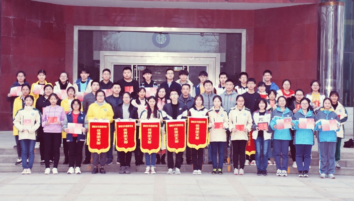 在热烈的掌声中,大会表彰了先进集体和个人。3个优秀团总支,5个优秀团支部,12名优秀团干部,5名优秀社团干部及16名优秀社团成员受到表彰。张书记和与会老师为受表彰的先进集体和个人颁发了锦旗和证书。会后,所有受表彰的师生在办公楼前合影留念。