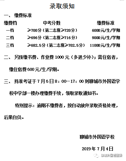 市、区两级教体局的统一组织下,2019年新高一录取工作已经完成。下列同学已被录取为我校2019级高一新生,祝贺各位学子实现了心中理想,以优异成绩考入聊城市外国语学校,踏上人生的新征程!聊城市外国语学校热烈欢迎你们的到来。