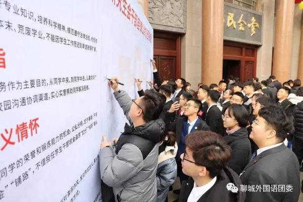 最后,全体参会代表们在《学生会、研究生会干部自律公约》签名墙前“以心为约,书写誓言”。