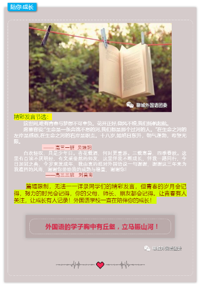 前不久,我校2017级高三成功举办了成人礼暨高考冲刺动员大会活动。会上老师和同学们的精彩发言,至今难忘。今天,让我们一起“含英咀华品词句”,一起记取、重温那些令人感动、催人奋进的篇章!