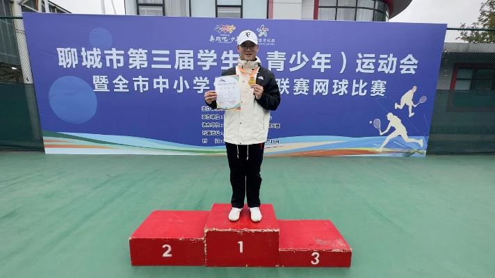 ——我校健儿聊城市第三届学生(青少年)运动会网球赛场折桂