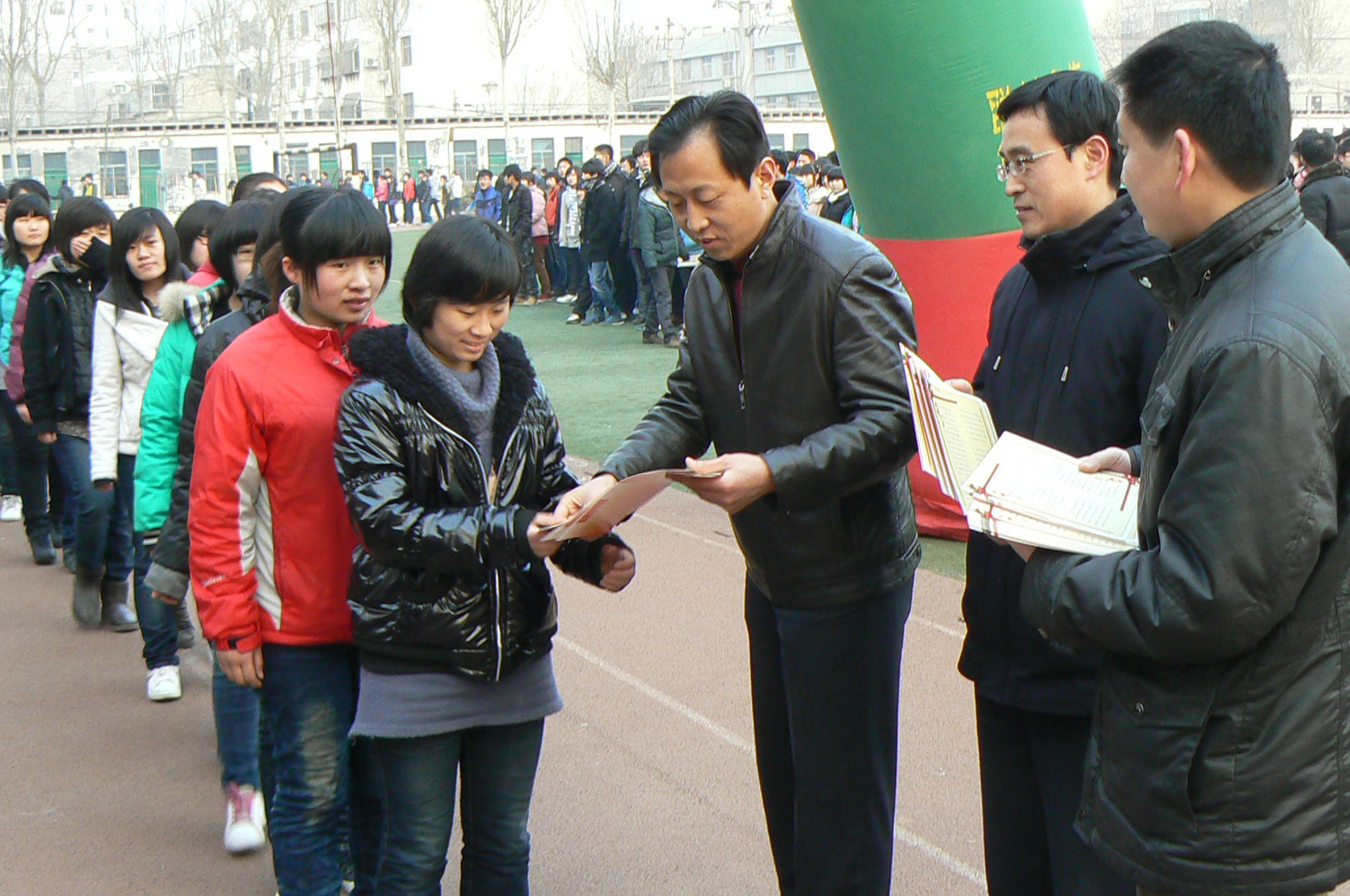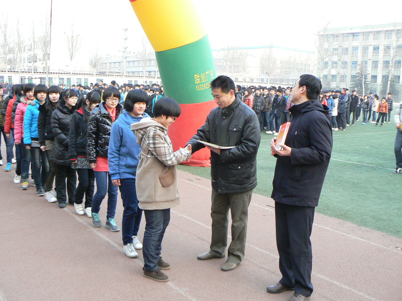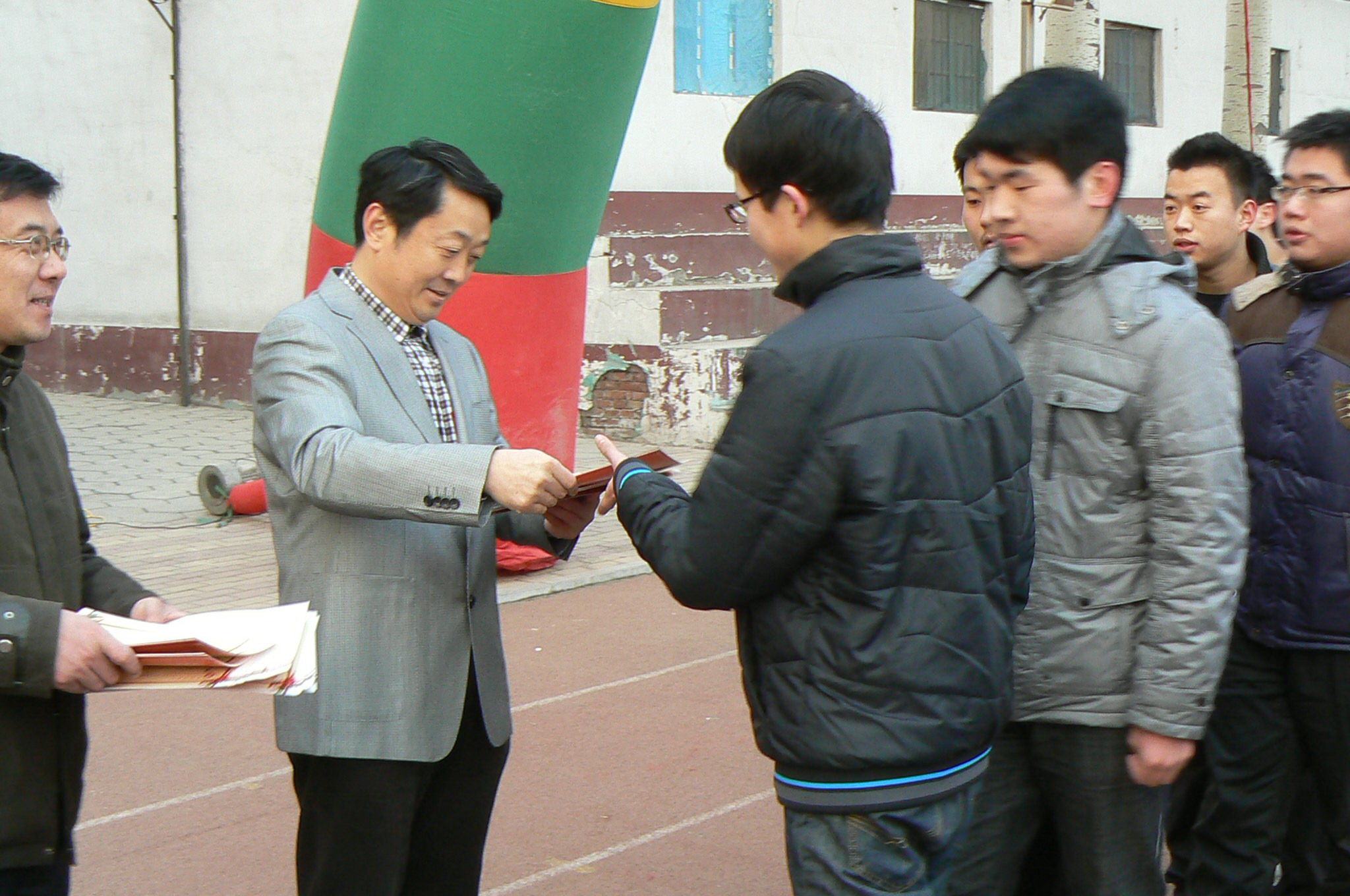 立下青春誓言 担起时代重任 ——我校隆重举行高三学生成人仪式 2月27日7:00,我校高三学生十八岁成人宣誓仪式在操场隆重举行。党委书记李荣军作重要讲话。副校长徐继胜主持仪式。政教处主任赵杰茹、高一、高二、高三年级组主任柳阳、王守涛、任强及全校学生参加了此次活动。 伴随着《圣洁的时刻》优美欢快的旋律,高三的同学们列队走过“成人门”,李书记、徐校长及等学校领导为每个同学致以祝福,并向同学们了颁发成人纪念卡。 在鲜红的国旗下,已步入成人行列的同学们庄严宣誓:捍卫神圣宪法,维护法律尊严 。 履行公民义务,承担社会道义。俭以养德,朴以修身,信以立业,诚以待人,忠以报国,孝以侍亲,壮我体魄,励我精神,敏言慎行,自强不息。以我壮志激情,肩负成年责任,以我火红青春,报效祖国人民! 在这个神圣的时刻,李书记热情洋溢地祝福同学们:前途似锦,一生幸福,个个都会谱写出自己的美好精彩的人生,并满怀激情地向同学们讲述了古代中国的文明史、屈辱史以及现代中国的飞速发展史,激励同学们用青春、智慧和热情去谱写无愧于这个伟大时代的壮丽篇章。他指出,同学们,你们是幸运儿,你们将同伟大的祖国一起成长,中华民族将在你们的壮年时,走向伟大复兴,再次创造世界辉煌。希望你们勇于担当,把自己的青春和热血投入到中华民族的伟大复兴中去,实现自己的人生价值,敢于追求,打造自己的精彩人生,学会感恩,做一个有益于集体和他人的人,无愧祖国,无愧今生。 最后,徐校长要求同学们站在人生的新起点,永远珍藏这美好的时刻,带着对过去的记忆和对未来的责任踏上新的征程,向着更为高远的目标奋进;牢记今天的誓言,履行自己的承诺,自立、自尊、自爱、自信、自强,学习以恒,做事以敬,待人以诚,勇于创造,用坚韧与信心去缔造自己成功的人生,用青春与激情去实现中华民族的伟大复兴。