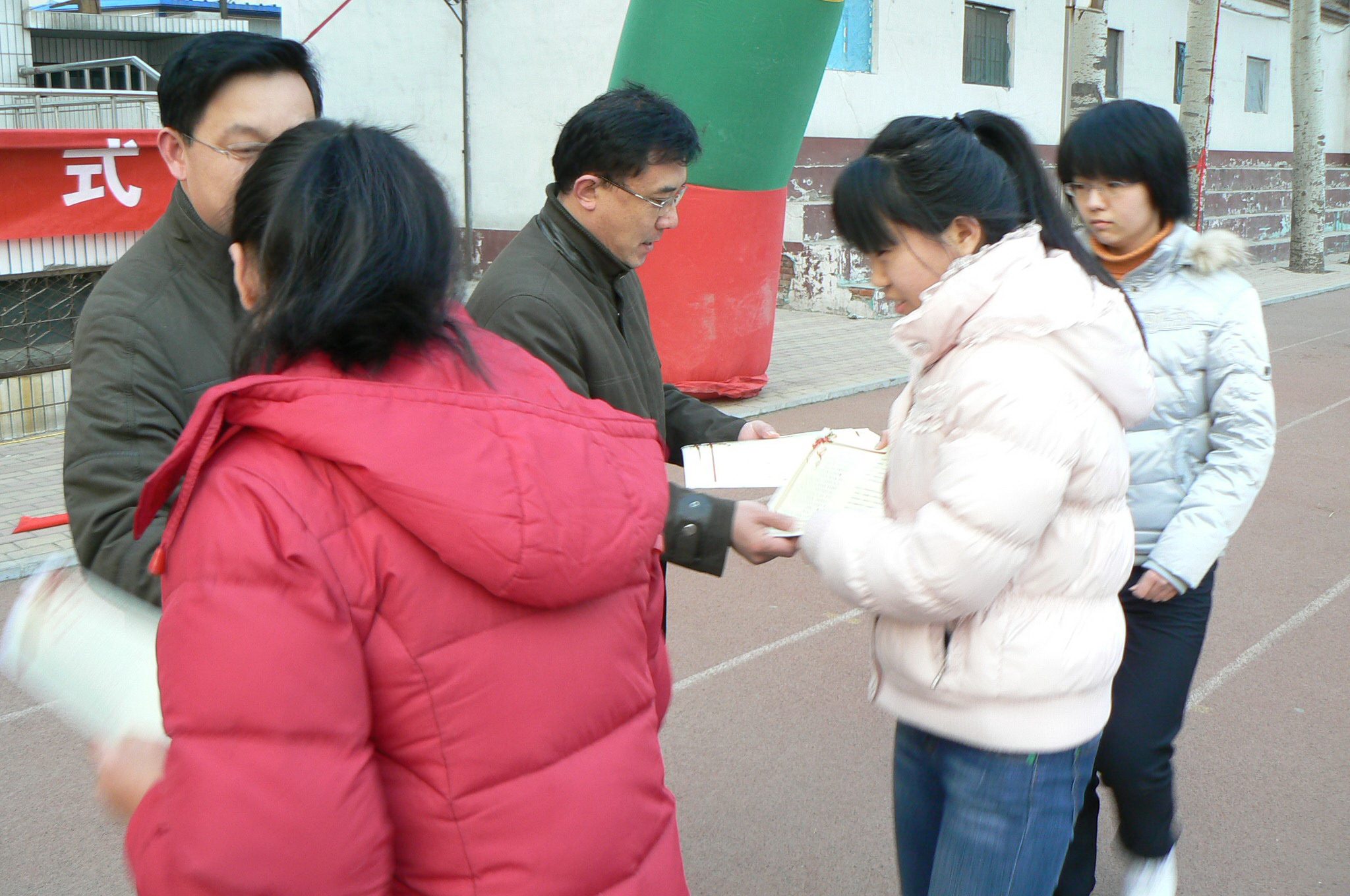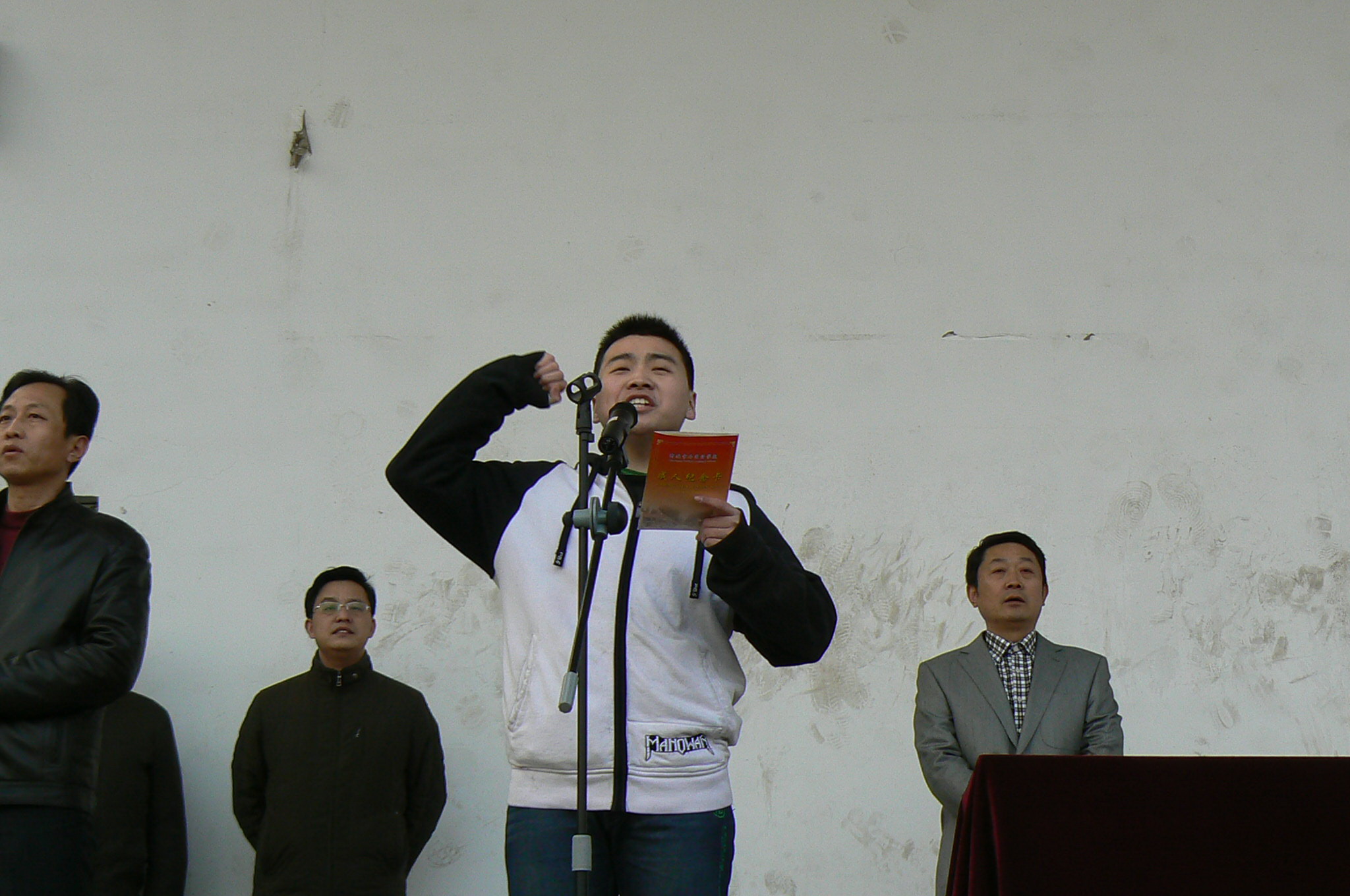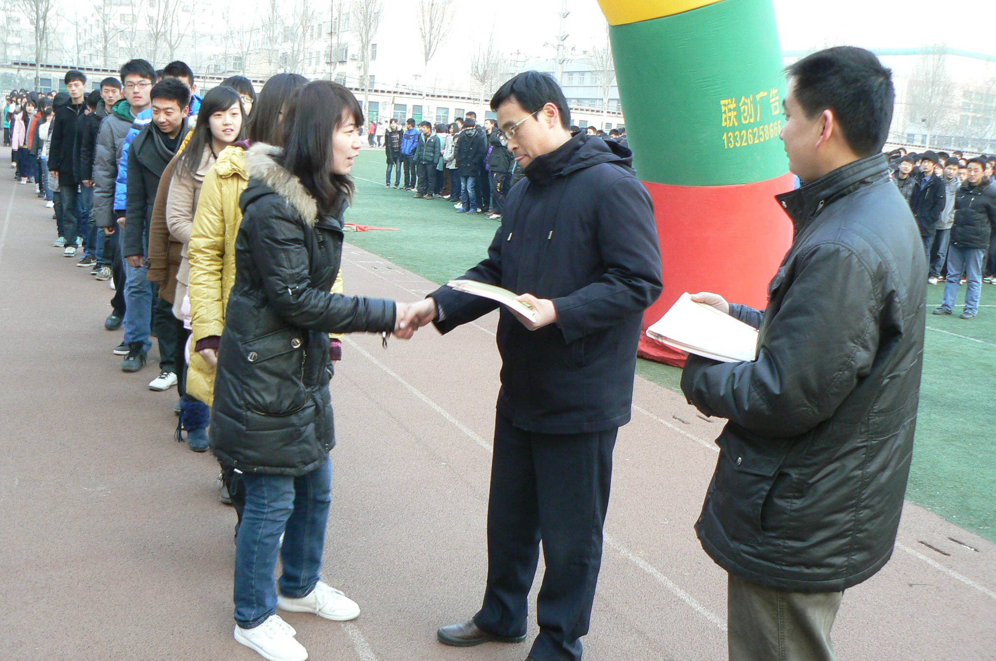 立下青春誓言 担起时代重任 ——我校隆重举行高三学生成人仪式 2月27日7:00,我校高三学生十八岁成人宣誓仪式在操场隆重举行。党委书记李荣军作重要讲话。副校长徐继胜主持仪式。政教处主任赵杰茹、高一、高二、高三年级组主任柳阳、王守涛、任强及全校学生参加了此次活动。 伴随着《圣洁的时刻》优美欢快的旋律,高三的同学们列队走过“成人门”,李书记、徐校长及等学校领导为每个同学致以祝福,并向同学们了颁发成人纪念卡。 在鲜红的国旗下,已步入成人行列的同学们庄严宣誓:捍卫神圣宪法,维护法律尊严 。 履行公民义务,承担社会道义。俭以养德,朴以修身,信以立业,诚以待人,忠以报国,孝以侍亲,壮我体魄,励我精神,敏言慎行,自强不息。以我壮志激情,肩负成年责任,以我火红青春,报效祖国人民! 在这个神圣的时刻,李书记热情洋溢地祝福同学们:前途似锦,一生幸福,个个都会谱写出自己的美好精彩的人生,并满怀激情地向同学们讲述了古代中国的文明史、屈辱史以及现代中国的飞速发展史,激励同学们用青春、智慧和热情去谱写无愧于这个伟大时代的壮丽篇章。他指出,同学们,你们是幸运儿,你们将同伟大的祖国一起成长,中华民族将在你们的壮年时,走向伟大复兴,再次创造世界辉煌。希望你们勇于担当,把自己的青春和热血投入到中华民族的伟大复兴中去,实现自己的人生价值,敢于追求,打造自己的精彩人生,学会感恩,做一个有益于集体和他人的人,无愧祖国,无愧今生。 最后,徐校长要求同学们站在人生的新起点,永远珍藏这美好的时刻,带着对过去的记忆和对未来的责任踏上新的征程,向着更为高远的目标奋进;牢记今天的誓言,履行自己的承诺,自立、自尊、自爱、自信、自强,学习以恒,做事以敬,待人以诚,勇于创造,用坚韧与信心去缔造自己成功的人生,用青春与激情去实现中华民族的伟大复兴。