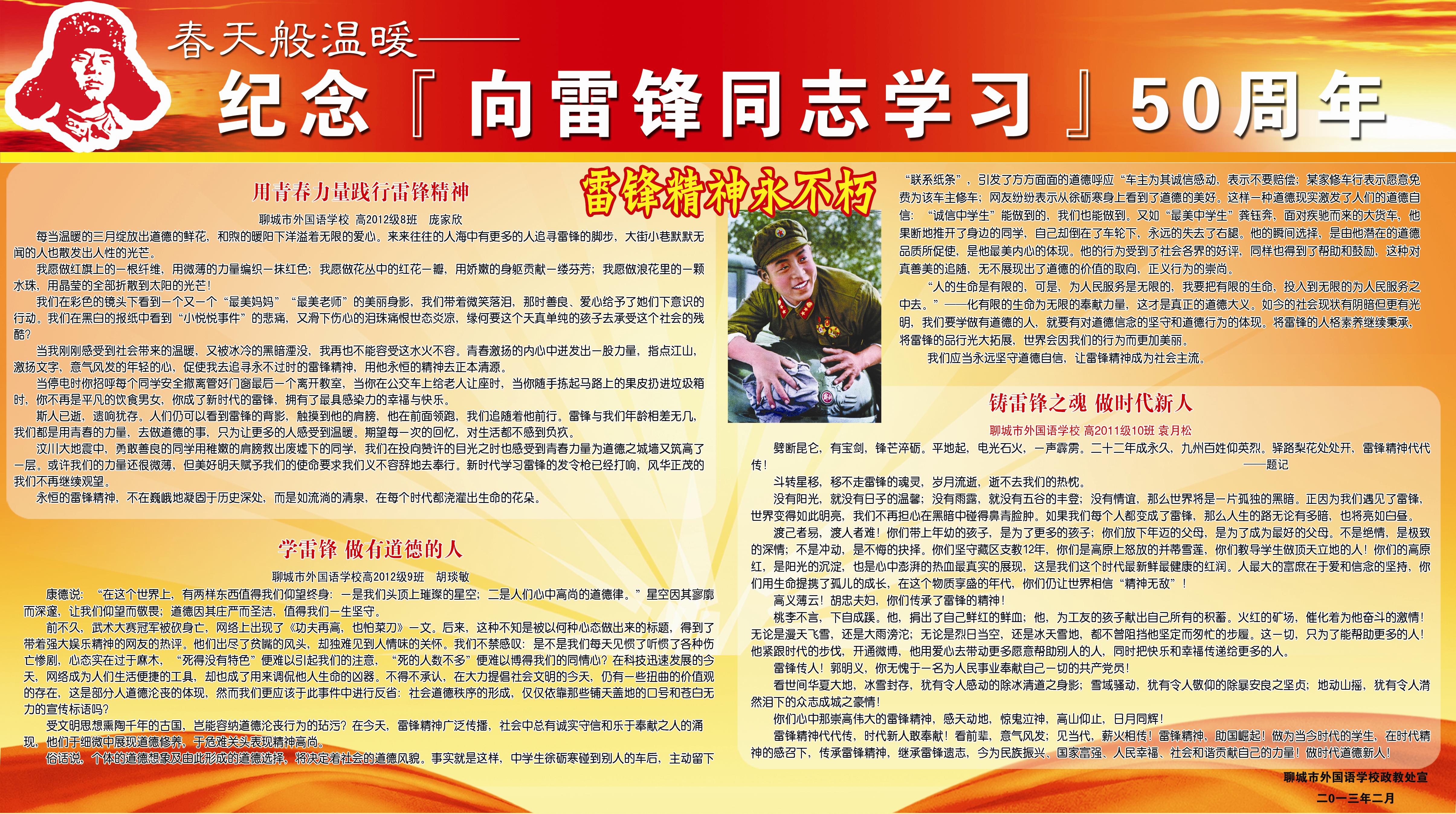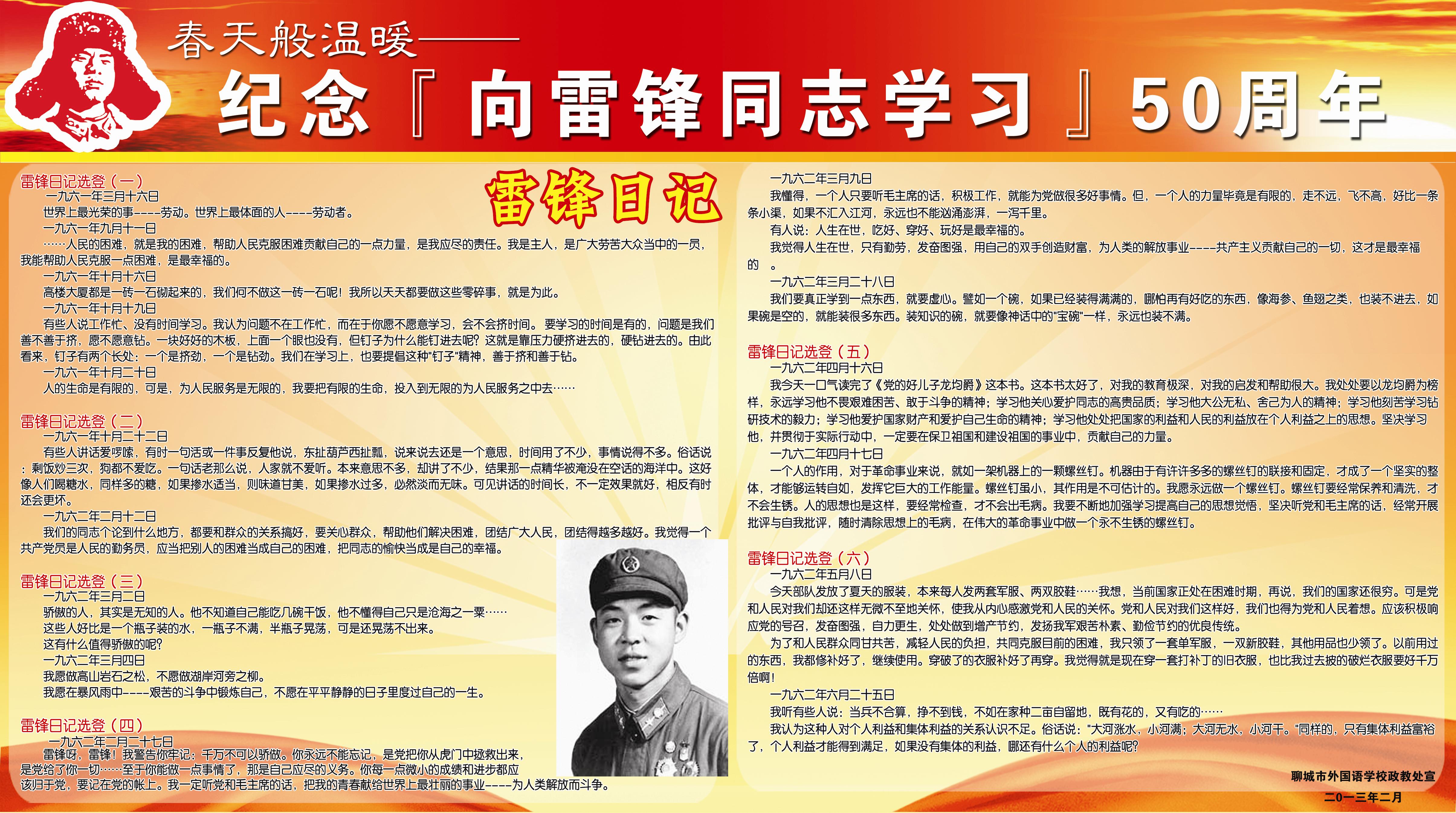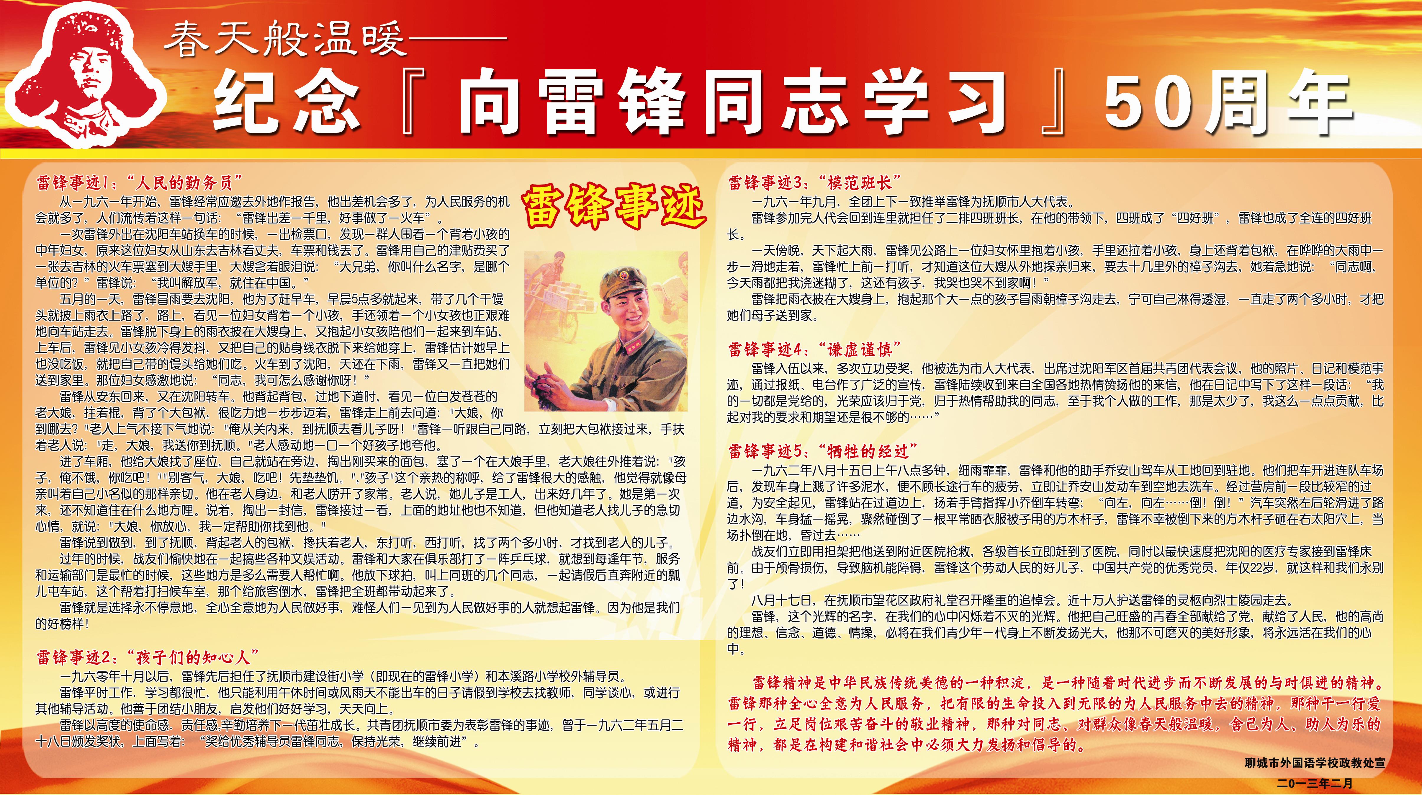 纪念向雷锋同志学习五十周年宣传栏