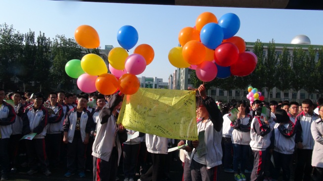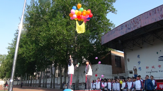 五四青年节,青年礼现场。看我校学生,青春多美好。放飞梦想时,胸怀大希望。立志为栋梁,做个好儿郎! ——题记 5月4日下午5:00在学校操场,我校为高一学生举办了一次别开生面的青年礼。活动由政教处赵杰茹主任主持,钱洪举校长出席了本次大会并做了重要讲话。他指出,生命对每个人只有一次,而青春则是这仅有的一次生命中易逝的一段。值此“五四”青年节,我们缅怀“五四”先驱们的业绩,为同学们举行“青年礼”,就是希望你们能秉承民族精神,高举“五四”火炬,肩负时代责任,用知识和汗水,以满腔热情,去开拓、去创造、去拥抱新的希望,迎接这个机遇与挑战并存的时代。钱校长向同学们提出三点要求和希望:一,希望同学们志存高远,脚踏实地,做一个有使命感的;二,希望同学们勤学敏思,学会求知,做一个积极上进的人。三,希望同学们遵纪守法,学会做人,做一个明礼诚信的现代公民。他期望同学们时刻牢记使命,自觉地把个人发展与祖国发展结合起来,把个人目标与社会目标结合起来,把个人前途与民族前途结合起来,把学习当成一件快乐的事,在学习中增长自己的见识,培养健康向上的生活情操,在聊城市外国语学校这片沃土上健康、茁壮成长,努力做一名有远大抱负的新时代的中学生。 本次活动大大激发了学生们对生活、对未来的美好憧憬,怀揣着青春的梦想,踏着整齐的步伐,口号嘹亮。当写满誓言的绢布被气球带向高空的时候,同学们群情激昂、豪情万丈。我们看到了我外国语学生昂扬向上、奋发图强的精神面貌。行之有效富有意义的活动的确能够对学生的成长起到积极有益的影响。作为教育工作者,任重而道远!