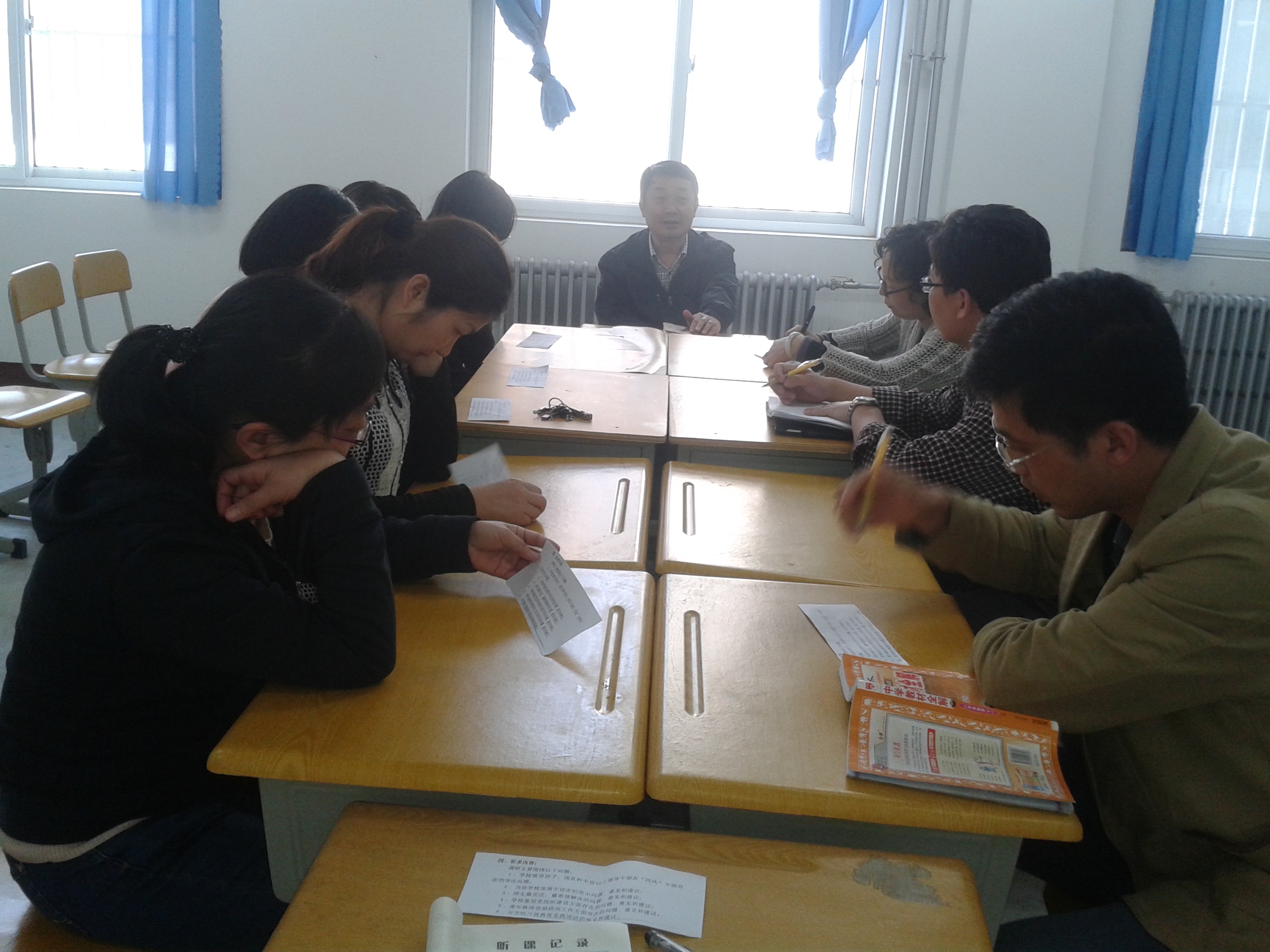 我校召开党的群众路线教育实践活动征求意见座谈会 5月7日、8日两天,学校党委书记李荣军分别走访了复课班(南区)、小学、初中、高中应届等各部,并在各部召开了党的群众路线教育实践活动征求意见座谈会。各部的分管校长、党员代表、教师代表参加了会议。