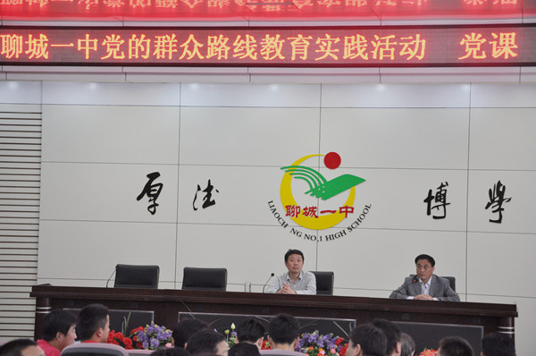 5月13日下午,我校全体党员会同一中、文轩校区的党员在聊城一中实验楼五楼报告厅集中学习,学校党委书记李荣军为大家上党课。