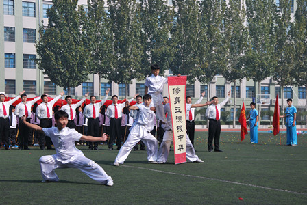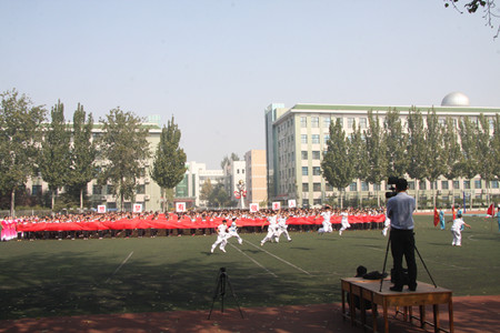 千人同诵《满江红》 唱响中国古文化 ——记外国语学校一次别开生面的文化活动 为了更好地弘扬传统文化,促进学生德智体全面发展,我校承接了“山东省推普周启动仪式”千人诵读大型朗诵节目的排演工作。当时正值开学之初,诸多事务异常繁杂又加上时间短,任务重,排练工作异常艰苦,但是我校领导李荣军书记和相关校级领导对此项工作非常重视,指定由校团委和初中一二年级、电教中心共同完成此项工作。并多次主持召开会议,研讨排练方案,亲临现场指挥评价,确保了排演活动地顺利开展。 虽然由于天气的原因,“山东省推普周启动仪式”最终取消了节目的表演环节,但是此项活动在李书记的总体部署下,在王怀军副校长和钱洪举副校长的亲切关怀下,在校团委、电教中心和初中一二年级全体师生的共同努力下,最终完成了录制,使节目得以搬上银屏,以资料片的形式再现了每一个精彩的瞬间,通过专业录制,我校师生的精彩演绎成为永久记录,得以保存。 此项活动见证了我校师生团结一心,顽强拼搏的精神。见证了 我校师生群体的智慧和力量。大家用行动践行了“有梦想,做 主人”的校训。 我们有理由相信结束的不仅仅是一次活动,我们也必将在活动 中收获更多。我们采用丰富多彩的艺术形式缔造校园文化,我们用 弘扬传统文化陶冶情操,我们用大型的集体性活动磨练学生意志, 我们在灵活多样的教育形式上多方探索,我们让学生感受到自我的 价值和力量!这必将带来更多有益的影响! 传承经典文化,爱我泱泱中华。外国语学校为梦想插上翅膀, 为成长助力启航! 附1:千人诵《满江红》节目编排导读 《满江红》是宋朝著名将领岳飞一首爱国诗篇,可以说,在我国古代诗歌中,没有一首像本词那样有这么深远的社会影响,也从来没有像本词那样具有激奋人心,鼓舞人们杀敌上战场的力量。为使节目以更强的艺术效果展现词作的恢弘气魄和万丈豪情,我们运用了多种艺术表现形式如教师领诵、学生合诵、武术表演、学生群诵、队形变换以及红绸带、折扇、卷轴、字牌、条幅、腕花、LED背景及音效等多种元素。 朗诵表演分为前后两个部分: 第一个部分表演者由三块组成,队伍正前方武术队表演,同时,教师表演式领诵,学生千人合诵,千人手持红色绸条有规律舞动。第二个部分为教师及武术队撤下,红色绸条放于地面。学生千人变队形分声部、分男女整齐合诵。两个部分一慢一快,相得益彰且元素变化多样。为大家带来了一场别开生面的文化艺术活动。 附2:千人诵《满江红》节目排练参与人员表 总指挥:李荣军 总协调:王怀军 总指导:钱洪举 艺术策划总编导:张丽娜 节目排练总调度:杨永红、吕道青、赵杰茹 包装剪辑总策划:杨旭东 千人诵武术动作编排:闫章田 千人诵方队教师领诵队成员: 男教师:郭连华、许以全、刘鹏、王颖、王学东 张中周、邱召峰、徐东然、申祥、刘智翔 女教师:王晓霞、于文莉、刘小慧、颜玮、王晓文 王家倩、王晓燕、王丹、崔文雅、苏春红 千人诵方队学生成员:聊城市外国语学校初中部2013级、2014级全体学生 聊城市外国语学校武术队 千人诵配乐制作:董浩宇及小学部全体音乐教师 千人诵美工道具制作:魏艳萌及小学部全体美术教师 千人诵队列训练:周立河及我校体育教师 千人诵动作训练指导教师: 郝美霞 赵隆梅 杨倩倩 王 会 张 欢 周培培 刘亚姝 苏春红 刘 鹏 申 祥 南方芳 贾秀倩 王艺涵 崔文雅 王 蔚 葛书海 丁 洁 张 祥 谢文静 刘智翔 范静静 曹晓娜 王 萌 张 婷 刘志爽 魏艳萌 刘明军 朱红芳 秦延青 耿艳秋 王 颖 孙 莹 李振森 王晓燕 刘文健 徐东然 王士鹏 李书文 王 萱 李子书 许以全 李广凯 刘小慧 张中周 国 霞 李庆军 宋艳玲 贾金涛 许春霞 付 飙 王晓文 于明伟 颜 玮 齐丽霞 陈慧芝 孙学东 韩丽姣 邱召峰 钱方媛 冯 昆 千人诵现场摄制人员:李三军 范后峰 张世栋 许宪凯 特别鸣谢: 聊城电视台 聊城日报教育网站协助拍摄录制工作!  |